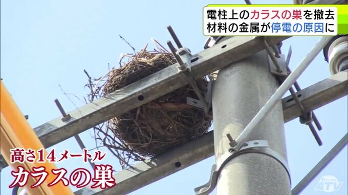 停電の原因となる電柱の「カラスの巣」撤去作業の様子が公開 電力会社は青森県内で…