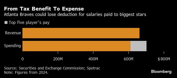 MLBアトランタ・ブレーブス、選手報酬巡り税負担急増へ-新規則で