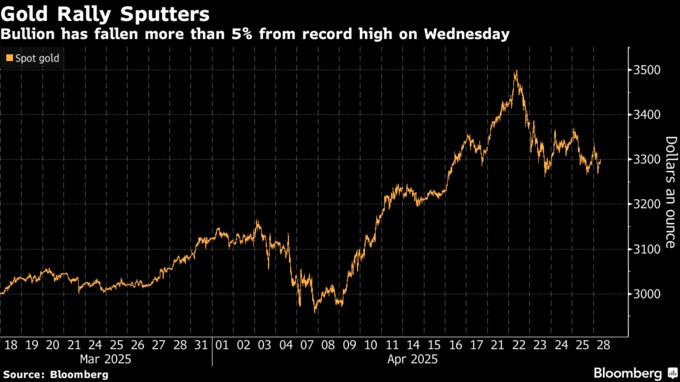 金相場の上昇失速-貿易摩擦の懸念緩和で安全資産需要が後退