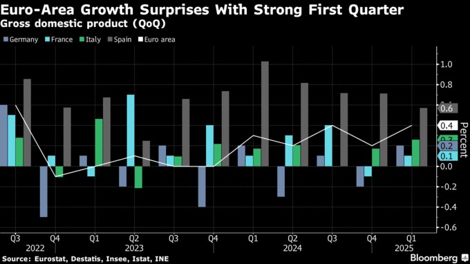 ユーロ圏経済、1-3月は予想以上に成長加速-米関税で今後は厳しく