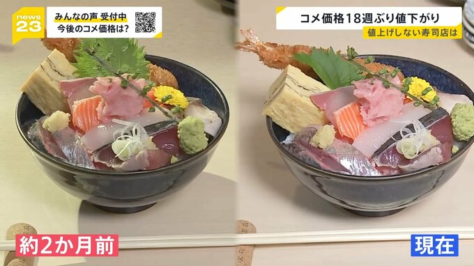 コメ価格18週ぶりの値下がりも…下落は19円 値下げせず奮闘の寿司店では 実感できる日はいつになるのか?専門家が予測【news23】