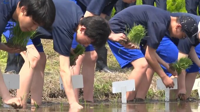 高校生がサポート 中学生が高校の敷地内にある学習田で田植え体験 岩手・奥州市