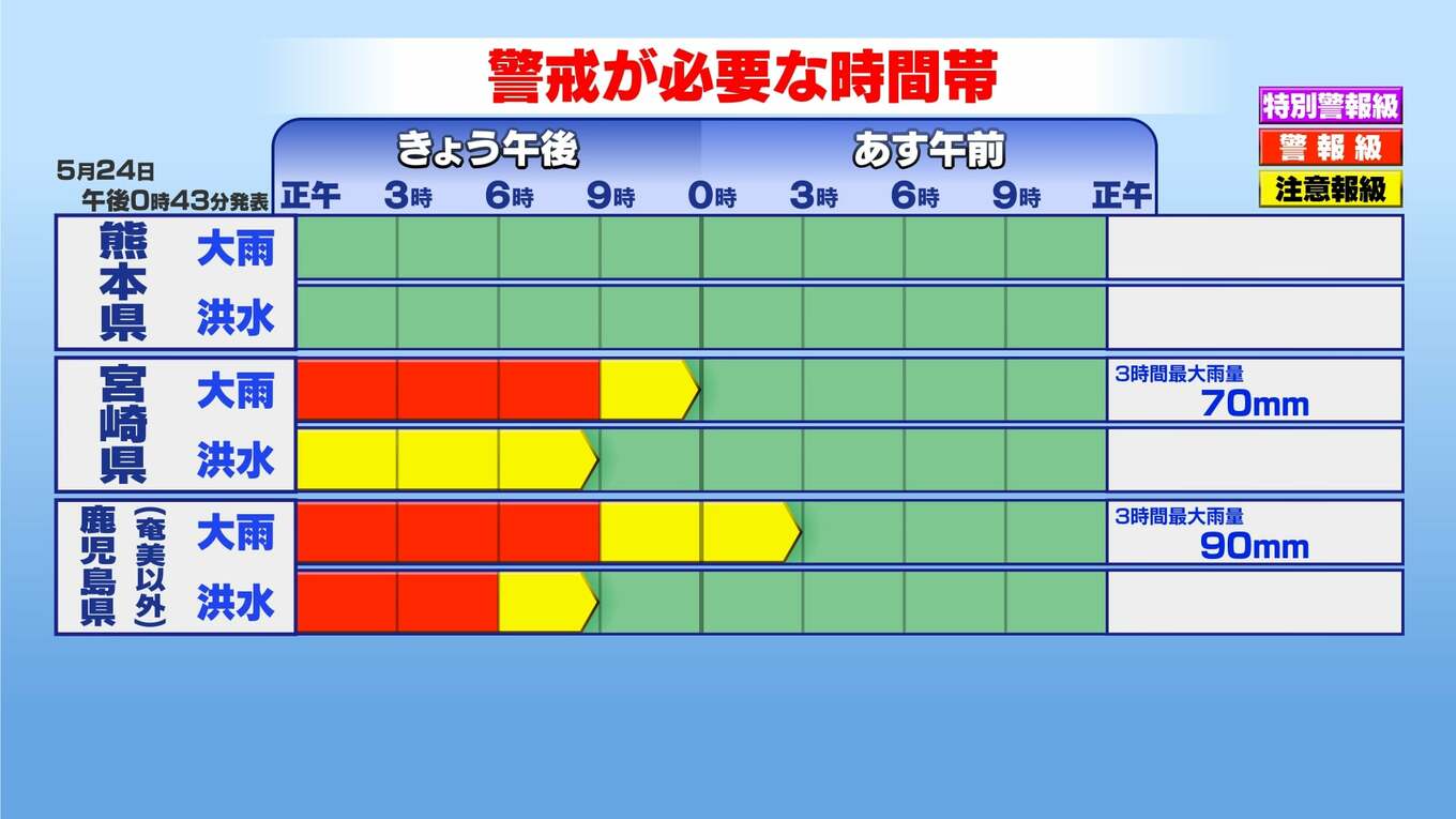 【大雨に関する気象情報】福岡70ミリ 熊本100ミリ 鹿児島120ミリ 警報級大雨おそれ…