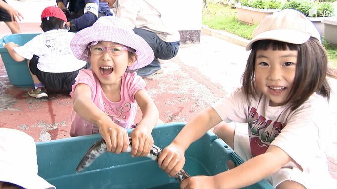 「ツルツル」「ヌルヌル」幼稚園児がウナギのつかみ取りに挑戦 浜名湖うなぎの歴史…