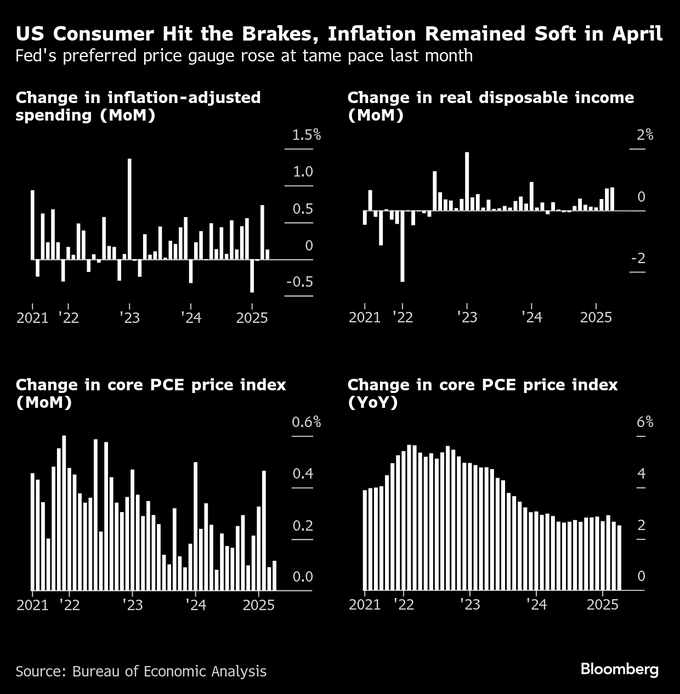 上段左:実質支出、上段右:実質可処分所得、下段左:PCEコア価格指数(前月比)、下段右:PCEコア価格指数(前年同月比)