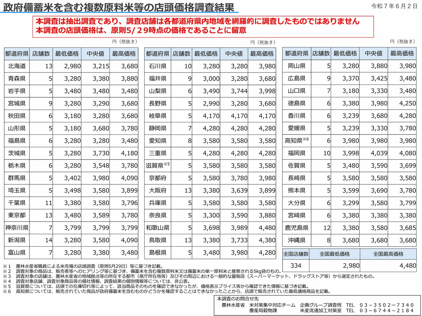 政府備蓄米・店頭価格調査結果(農林水産省2025年6月2日)