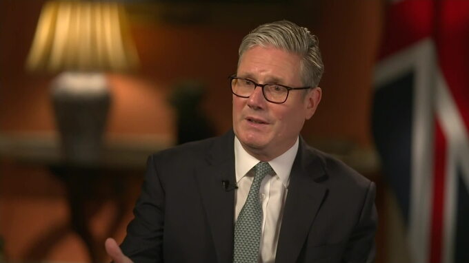首相官邸でブルームバーグニュースのインタビューに応じたスターマー英首相