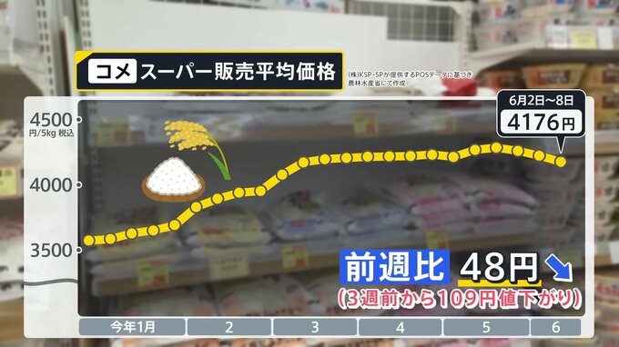 コメ平均価格 “3週連続で値下げ”も銘柄米は5000円台…コメが足りない!?農水省 収穫量を示す“作況指数”の公表廃止を発表【news23】
