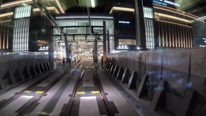 初めて広島駅ビルに乗り入れた「一番電車」 運転席からの映像を公開 日中の試運転…