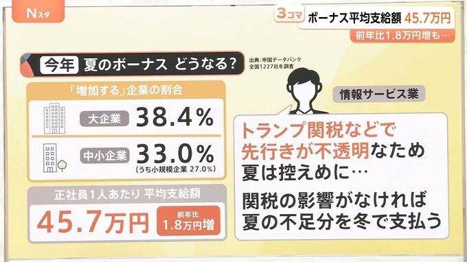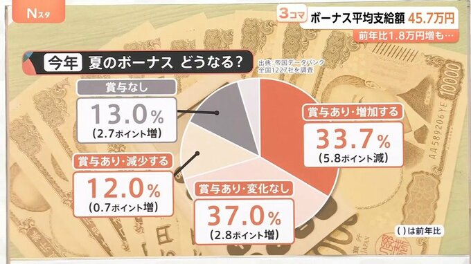夏のボーナス 平均支給額45.7万円 企業の3割で去年より増加、使い道は「貯金・預金」が最多【Nスタ解説】
