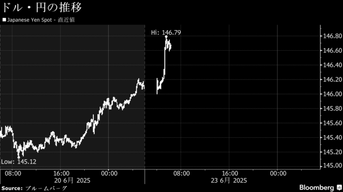 円は対ドル146円台、1カ月超ぶり安値圏-中東緊迫で有事のドル買い