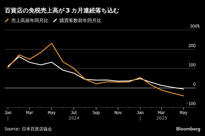 インバウンド消費急ブレーキ、百貨店免税売上3カ月連続前年割れ
