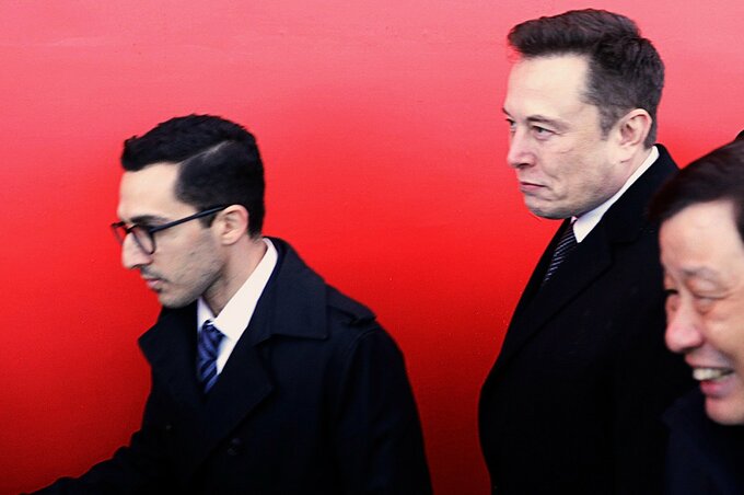 オミード・アフシャー氏(左、2019年、上海のテスラ工場で)