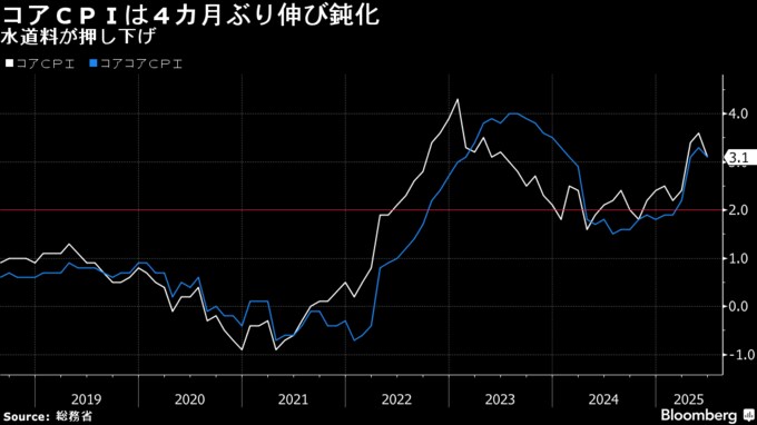東京消費者物価は4カ月ぶり伸び鈍化、エネルギーや水道料が押し下げ
