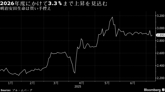 30年債の利回りは26年度にかけ3.2ー3.3%まで上昇も 明治安田生命、超長期国債に積極投資せず-金融正常化や財政リスクで