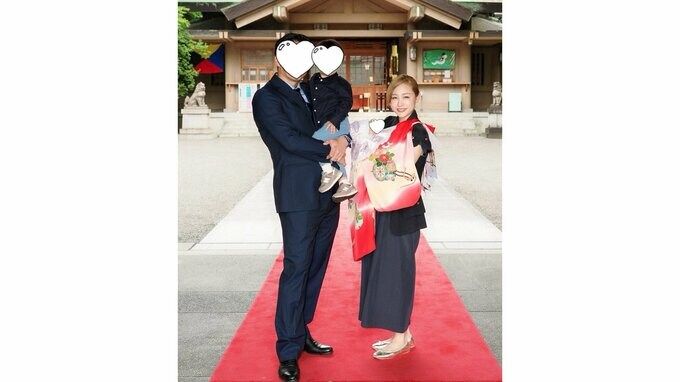 【 新井恵理那 】 「白いドレスは、今度は娘が」結婚式と同じ東郷神社で娘のお宮参…
