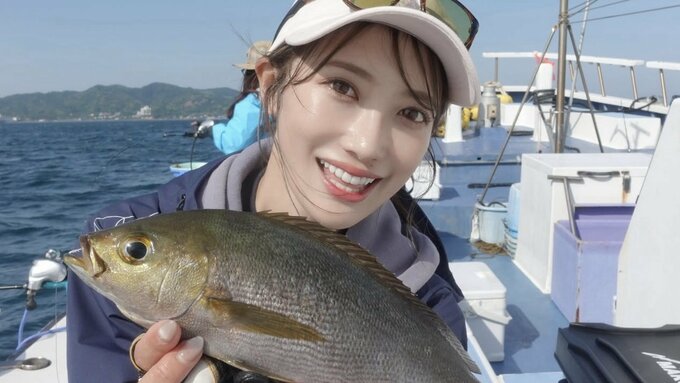 【 片原恵麻 】 「イサキ、美味しいよね」 関東の海でイサキ釣りを満喫 肩幅超え…