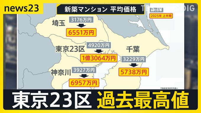 東京23区のマンション価格「1億3064万円」 賃貸の平均家賃「13万8460円」いずれも…