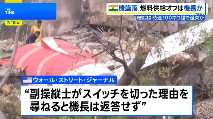 3. 機長が燃料スイッチ切ったか 米メディアが報道 260人死亡のエア・インディア機墜落事故