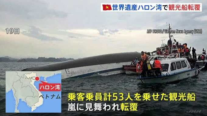ベトナム・ハロン湾で嵐に見舞われ観光船が転覆 子ども含む37人死亡