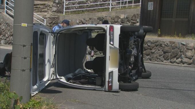 車2台が衝突する事故で1台横転…現場は信号機のない交差点、2~3メートルのブレーキ…