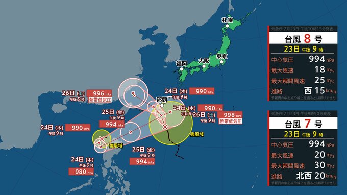 【ダブル台風】日本の南が台風で大混雑 28日頃には新たな熱帯擾乱も 雨と風のシミュレーション【気象庁・台風情報】