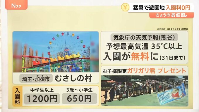 猛暑で遊園地の入園料「0円」…暑いマイナスイメージを“無料”でプラスに、割引率アップ“に5℃の壁”【Nスタ解説】