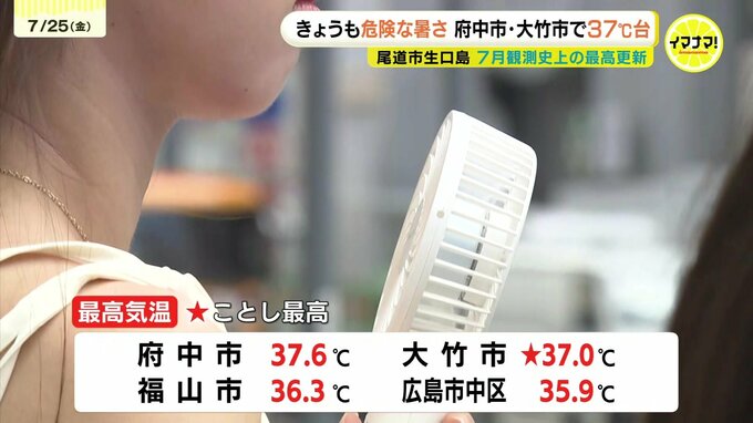 中国地方でも酷暑 府中市・大竹市で最高気温37℃台を観測 生口島では“7月の観測…