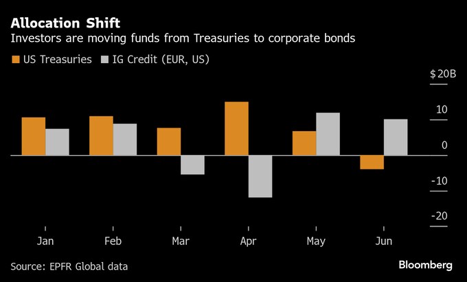 米国債が最も安全との定説、揺らぐ恐れ-社債への資金シフトが鮮明に