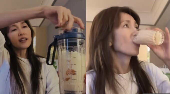 【工藤静香】「バナナ強し」寝起きすっぴんでお手製ドリンクを作る様子にファン「寝…