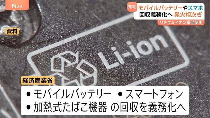 リチウムイオン電池内蔵のモバイルバッテリーなど3品目 使用済み製品の回収を製造メーカーなどに義務づける方針 経済産業省