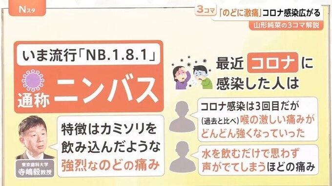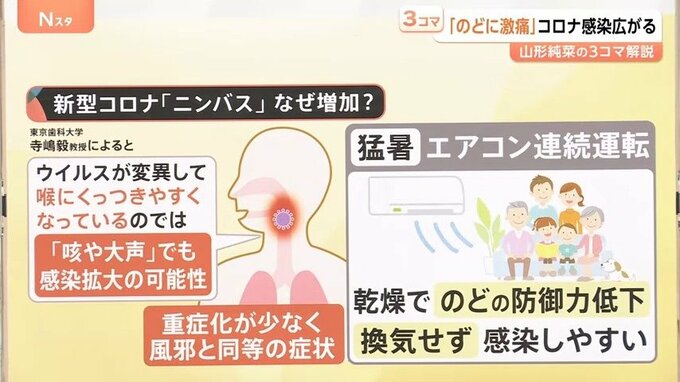 新型コロナ感染 7週連続で増加、いま流行の変異株「ニンバス」…特徴は「強烈な喉の痛み」【Nスタ解説】