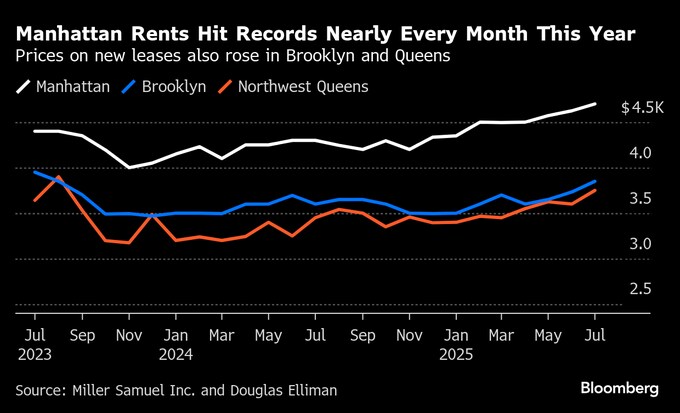 3. マンハッタンの家賃、7月に再び最高値更新-前年比9.3%増の4700ドル