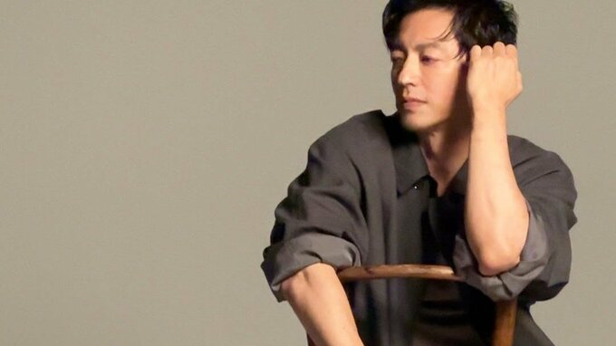 【 大沢たかお 】 “秋の装い”  チャコールのジャケットに茶のパンツで撮影の一コ…