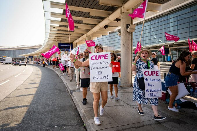 トロント・ピアソン国際空港でストに参加したエア・カナダの客室乗務員ら