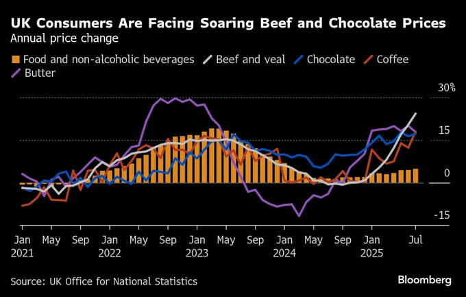 英の食料品価格が急騰、牛肉25%高-インフレ定着リスクを中銀は警戒