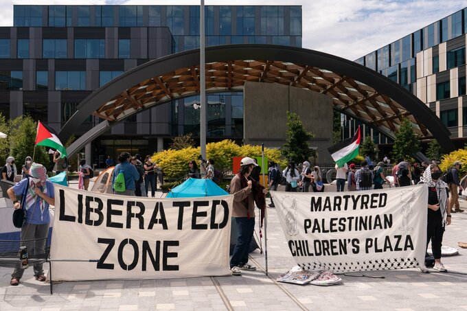 画像 1/2 マイクロソフト創業50周年の記念イベントで抗議するブティハル・アブサド氏 写真の記事を読む スクロールで次の画像へ 画像 2/2 マイクロソフトの本社前で抗議する参加者(8月19日、ワシントン州レッドモンド) 写真の記事を読む