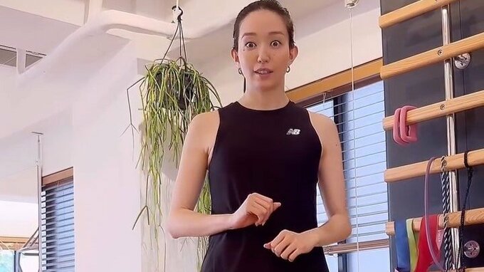 【 松島花 】トレーニングチューブが切れ「やったぁ~」目を見開きビックリ 内転筋…