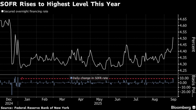 米短期金利が今年最高に上昇、FF金利目標を上回る-流動性さらに低下