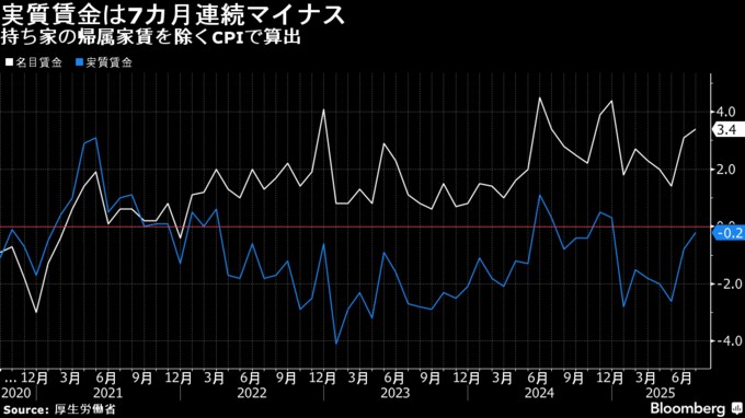 3. 7月の実質賃金を下方修正、7カ月連続マイナスに-特別給与が押し下げ