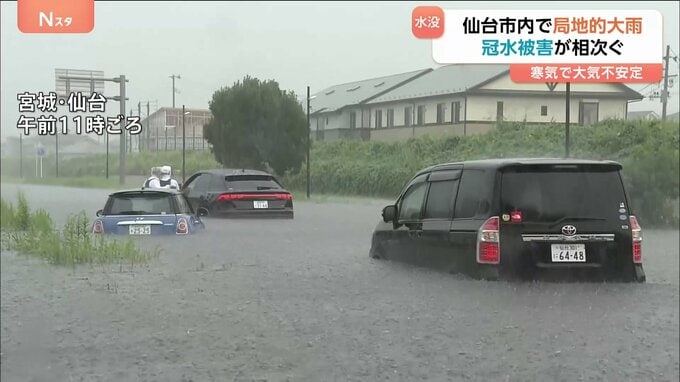 「車が浸水して出られない」仙台で冠水被害相次ぐ 記録的短時間大雨情報が発表 北…