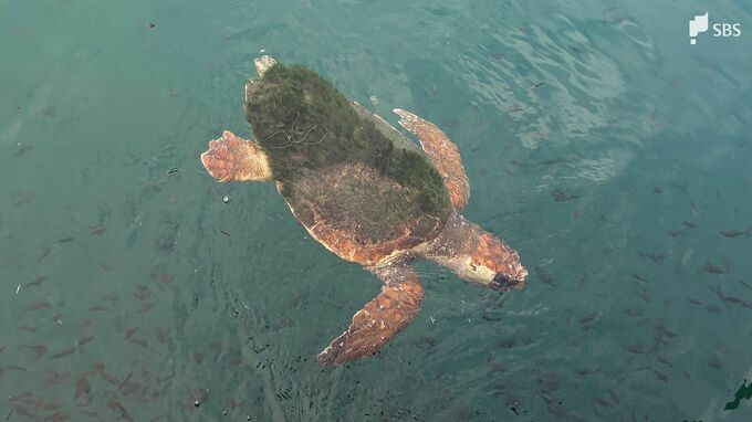 「なんでこんなところにカメが」秋の漁港で泳ぐアカウミガメ見つかる 産卵のシーズ…