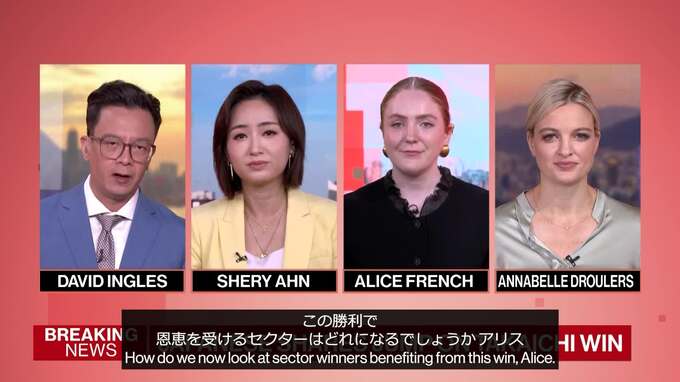 防衛や建設セクターの株価が上昇する一方、銀行株は下落。景気刺激策推進派に反応した日本市場の動向をブルームバーグのアリス・フレンチ記者がクイック解説します。