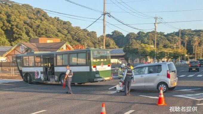 スクールバスと軽乗用車が事故 女性が搬送 鹿児島市・七ツ島