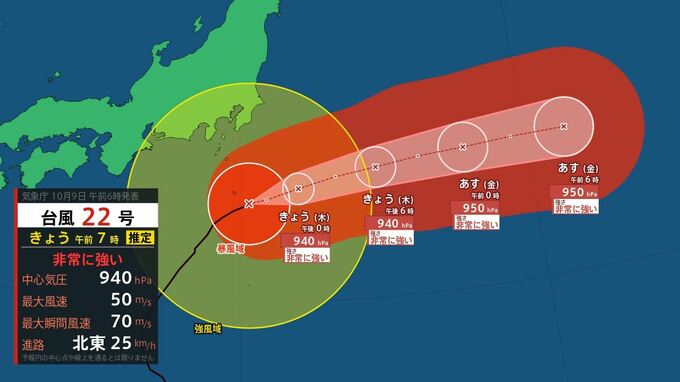 【台風情報】非常に強い台風22号 最大瞬間風速54.7mを観測 台風23号は25 km/h …