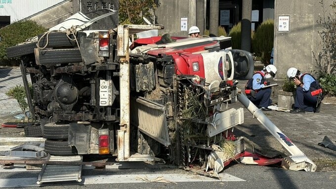 「トラックが横転」城南町の県道で車3台が絡む事故 4人が軽いけが 熊本