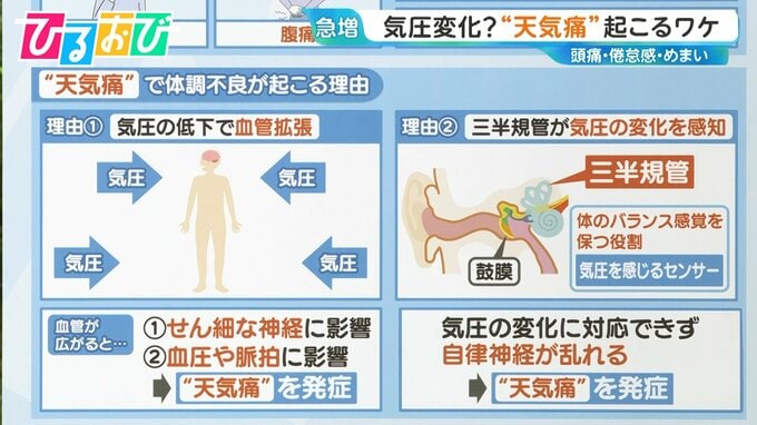 『天気痛』はなぜ起こる?気圧低下で頭痛・腹痛…メカニズムと対策を専門家に聞く【ひるおび】