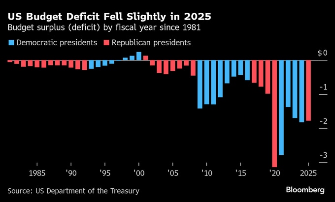 米財政赤字わずかに縮小、過去最高の関税収入が寄与-2025会計年度