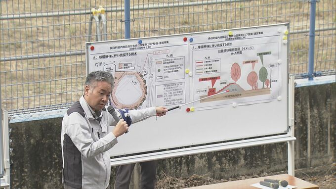 「新アリーナ」工事再開を前に建設予定地で市民説明会 取り壊される野球場に入れる“…