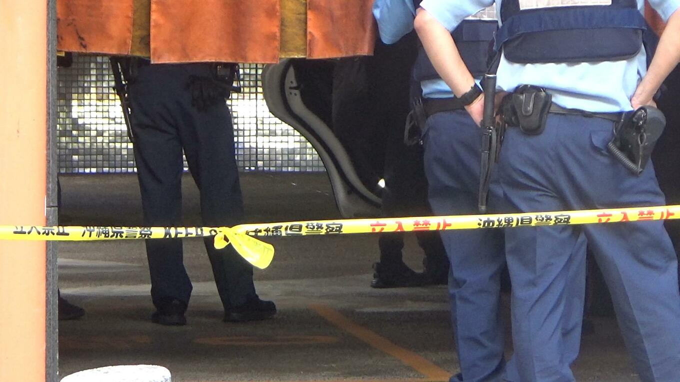 ホテルの駐車場で車のドアを開けて調べる捜査関係者